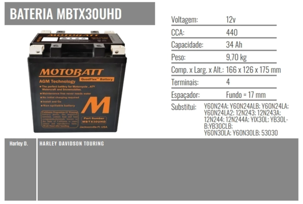 Substitui: YTX30L-BS, Y60N24A, Y60N24ALB, Y60N24LA, Y60N24LA2, 12N243, 12N243A, 12N244, YIX30L, YB30LB, Y60N30LA, Y60N30LB, YB30CLB