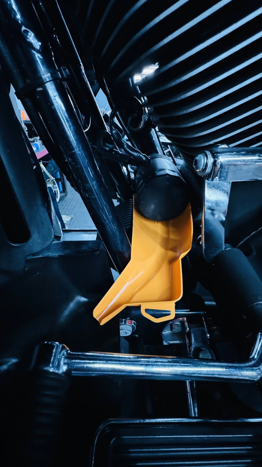 Retira o óleo do filtro de óleo durante a revisão sem sujar o motor da motocicleta.